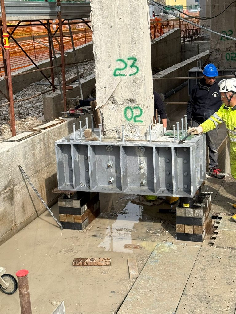 In questo modo la struttura cambia completamente il proprio comportamento: da edificio rigidamente collegato al terreno e che subisce l’evento sismico in modo incerto, diventa un sistema isolato, capace di muoversi in modo controllato durante un evento sismico. Un gigante di oltre mille tonnellate che non è più rigidamente ancorato alle fondazioni, ma poggia su dispositivi che gli consentono di oscillare lentamente e di dissipare l’energia del terremoto, proteggendo la struttura e le persone che la vivono e garantendo livelli di sicurezza molto elevati.