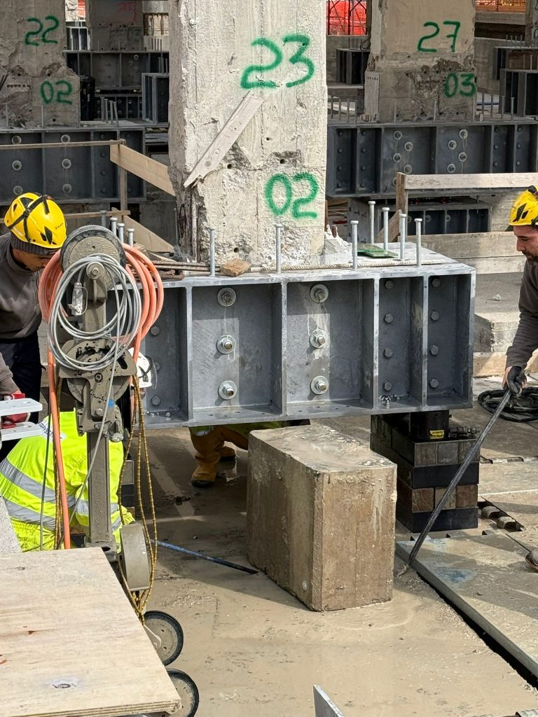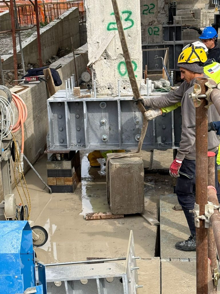 “Uno degli aspetti più sorprendenti dell’intervento riguarda proprio la trasformazione strutturale dell’edificio – chiarisce Maddaloni –. La scuola, un corpo di fabbrica in calcestruzzo armato di tre piani, con un peso superiore alle mille tonnellate, che poggia su 36 pilastri, viene sollevata progressivamente mediante martinetti idraulici. Una volta sollevata, alcune porzioni dei pilastri vengono tagliate con una speciale tecnologia a filo diamantato, capace di incidere con precisione anche materiali estremamente resistenti come il calcestruzzo armato. In questo spazio vengono poi inseriti gli isolatori sismici, dispositivi progettati per ridurre drasticamente le sollecitazioni trasmesse all’edificio durante un terremoto”.